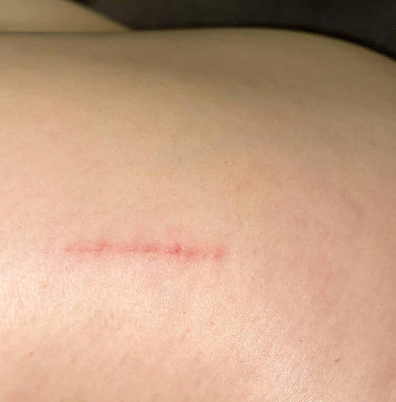 SERE breve ayer me encontraba en el supermercado un hombre me empujo con fuerza mientras pasaba junto a mi hablando por telefono nuevamente intento acercarse, cuando me empujo senti que me picho con algo al llegar a casa revise mi cuerpo vi un pequeño rasguño no vi sangre solo la lesion pequeña, su comprotamieNto fue extraño le pedi Que se alejara de mi porque en dos OCASIONES intento acercarse nuevamente espero pueda contestarme lo antes posible. no se si el contaba con una Jeringa me puse nerviosa no vi sangre por niNguna parte pero senti como me pincho con algo Y MI PIEL QUEDO ROJA APARENTEMENTE CON UN RASGUÑO SUPERFICIAL , NUEVAMENTE LE REITERO NO VI SANGRE PERO LA PIEL DE MI CADERA QUE ES UNA PIEL MUY DELGADA QUEDO CON RASGUÑO ROJO NO SANGRANTE