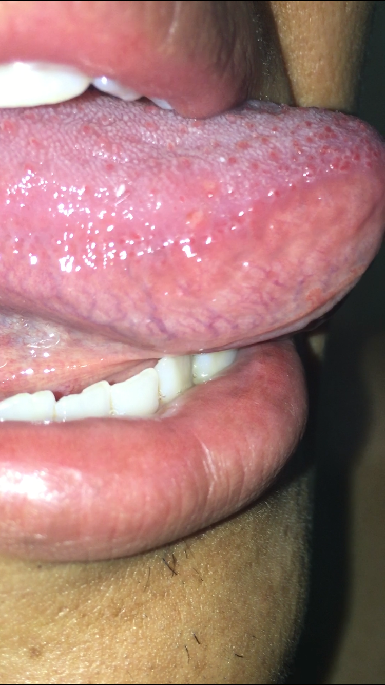 El día 15 de marzo me dio mucha temperatura, dolor de garganta y la tos que de hecho todavía la tengo. Y de ahí me quedo una dierrea pastosa no líquida y me han salido como llagas en la boca.
