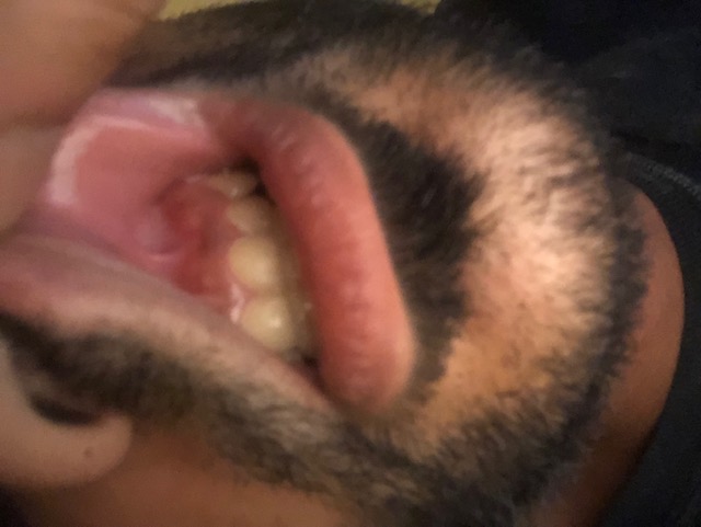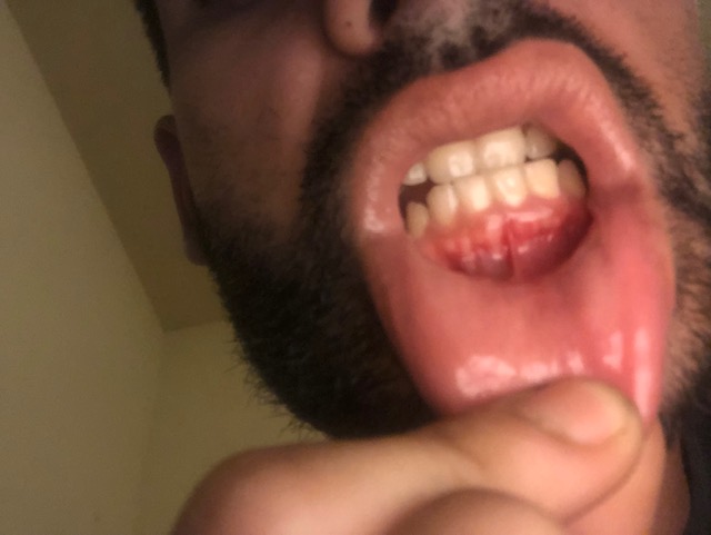 - No noté si había heridas en su pene. No creo. En mis labios no hay yagas ni cortadas; pero tengo algunas encías un poco inflamadas, pero sin sangrar. Adjunto fotos de mis encías.