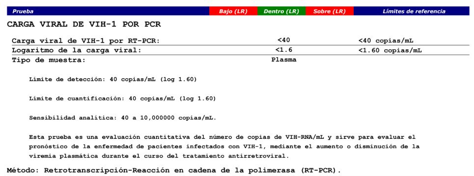 Me he realizado una prueba de carga viral de vih por pcr y los resultados son los siguientes: