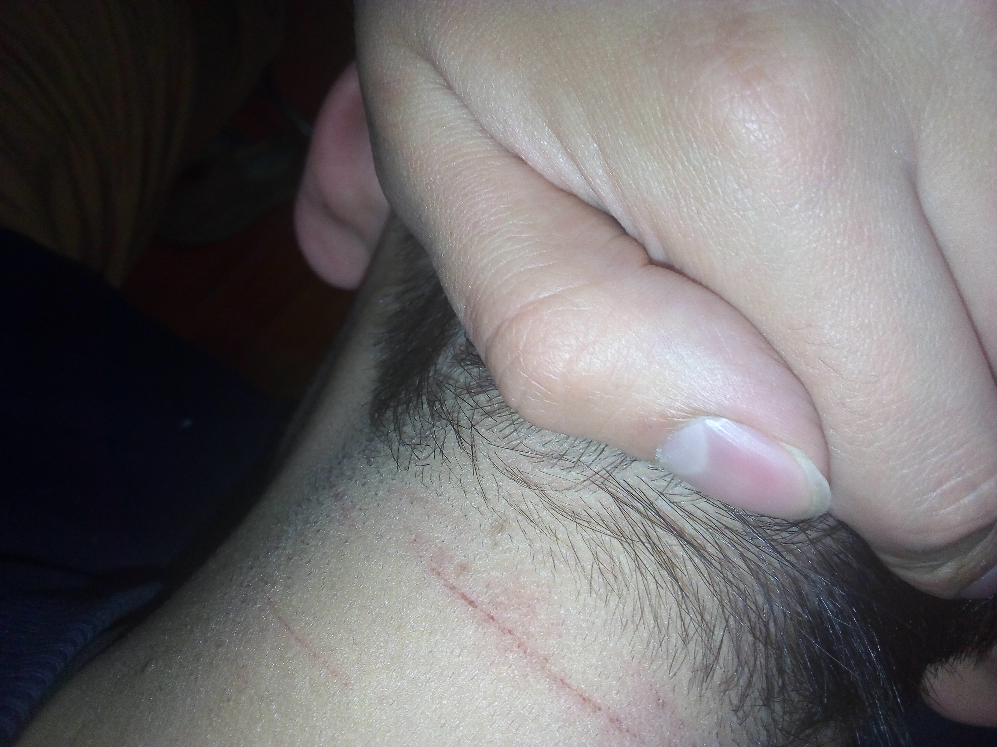 El dia de ayer fui a una peluqueria a cortarme el cabello al finalizar el corte de cabello la señorita me comento si queria que me quitara las pelusas de la nuca y patillas con la maquina electrica de cortar el cabello, yo respondi que si. Al llegar a mi casa senti un ardor en la nuca y me tome una foto y me lleve una gran sorpresa ya que tenia unas lineas e irritacion no se si sean heridas ya q me pase papel higienico y no se mancho de sangre pero si me arde , parece irritacion . Me gustaria saber si corri riesgo en lo que le eh comentado y si necesito una prueba de vih ?