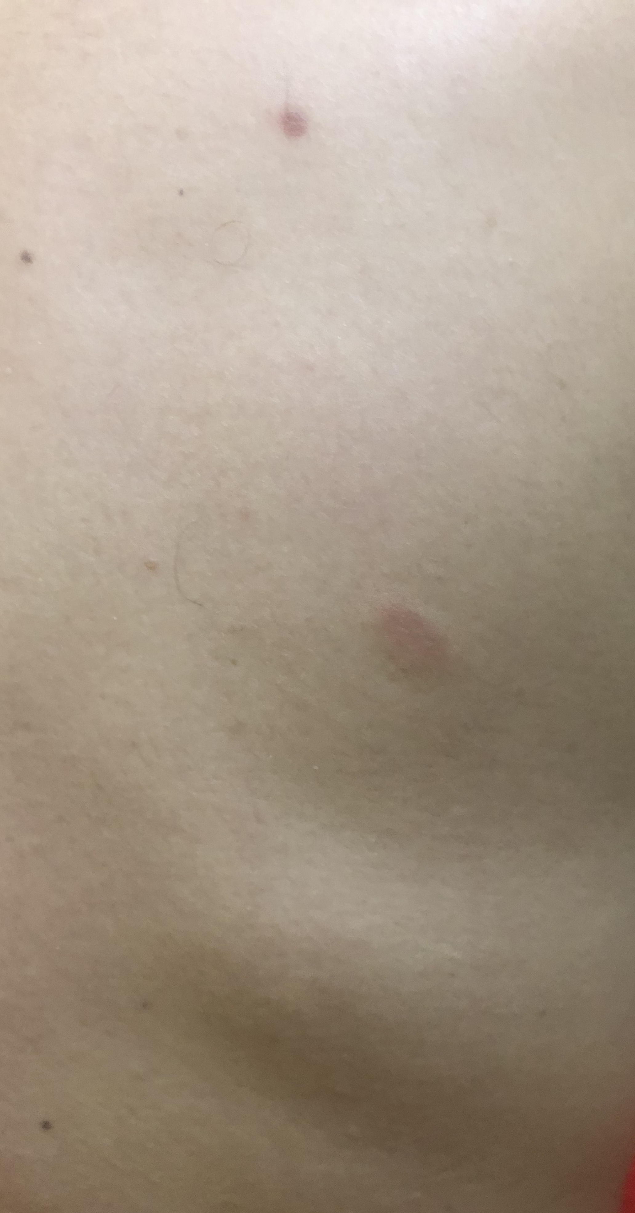 Edit: Adjunto unas fotos de unas vegijas que me han salido, no me pican y no me escuecen, son poco rugosas y si las rasco, en la superficie se ve caspita blanca. Tengo 5 o 6. Todas en el lado derecho del cuerpo. Me di cuenta hace unos 5 días.