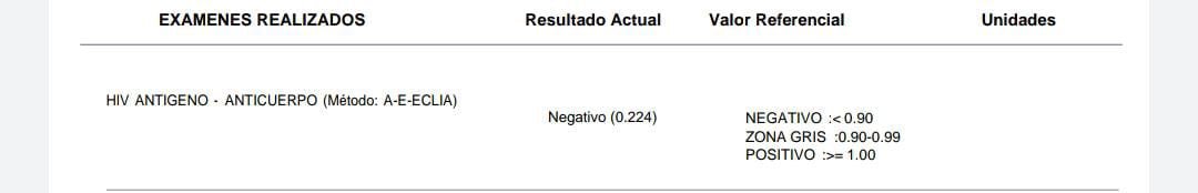 Por lo que se visualiza en tu resultado (donde tambien está las escalas de referencia) NO estás infectado de VIH. No eres reactivo. Por favor, recuerda usar preservativo y tener los cuidados del caso. En caso tengas alguna situación de riesgo, investiga sobre las PEP que son ultima alternativa a la exposición.