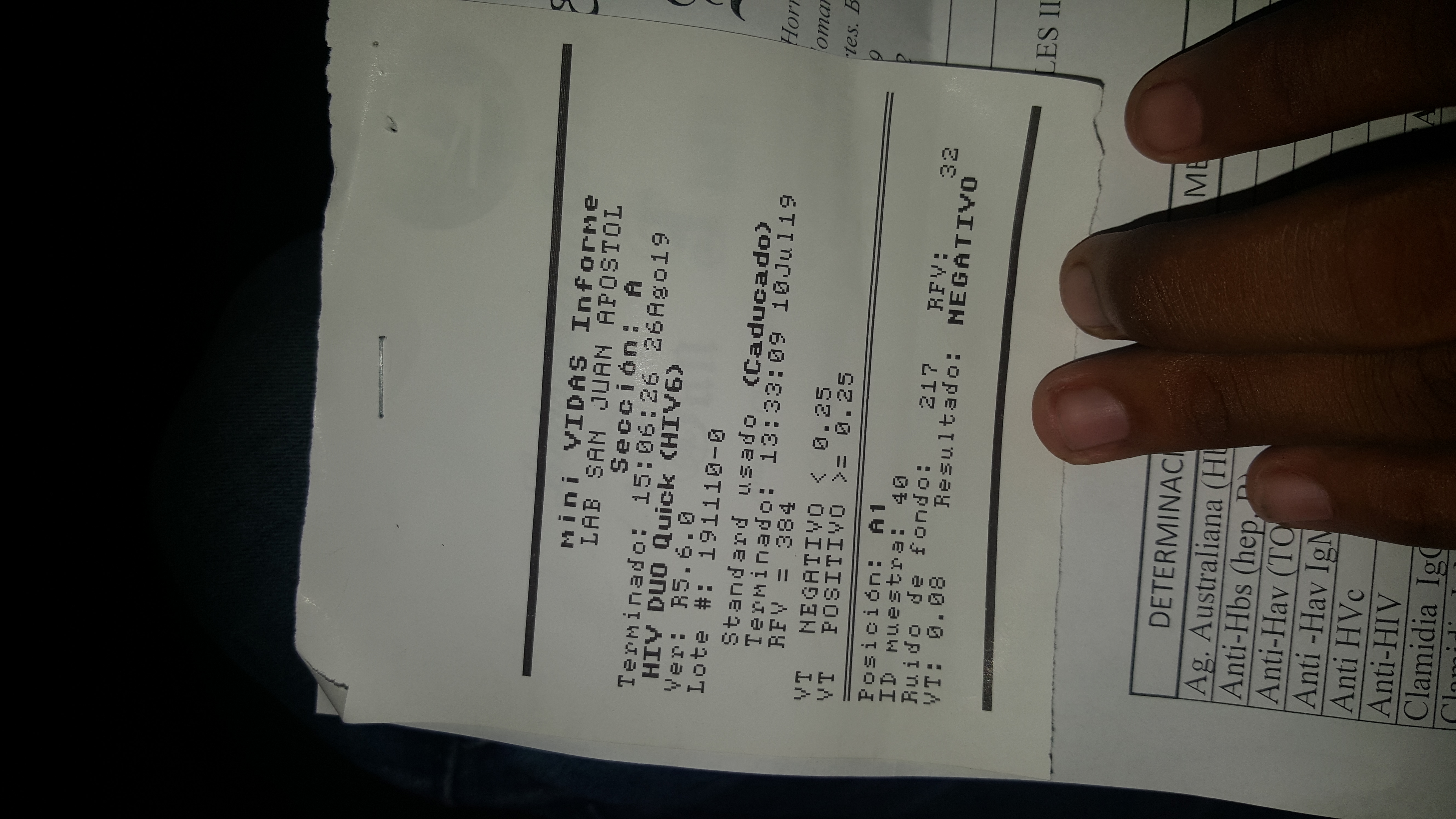 Ya me he realizado 4 pruebas después de ese dia y todas a dado negativo la.ultima fue ayer y mi resultado fuero vt 0.08 negativos la prueba que me realice fue un HIV DUO Quick (HIV6)