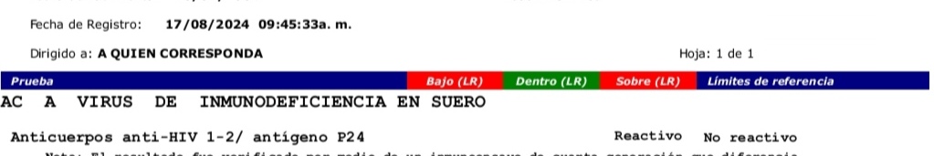 Hace un mes aproximadamente me hize una prueba de VIH en un laboratorio ya que en la universidad me hicieron una prueba rapida y dio positiva.