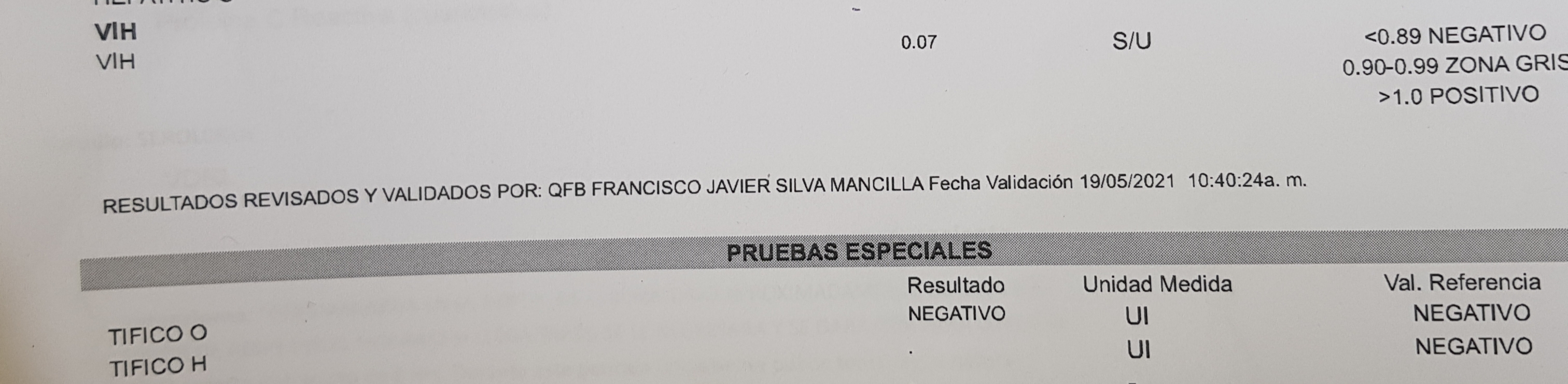 Me alegro por su resultado negativo y compartir su experencia con todos, muchas gracias.