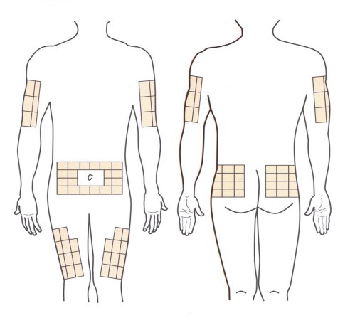 Las zonas donde puede pincharse la insulina, son en la parte posterior del brazo, abdomen, nalgas y en la zona lateral superior externa de las piernas. Para los niños delgados es mejor no utilizar el abdomen.