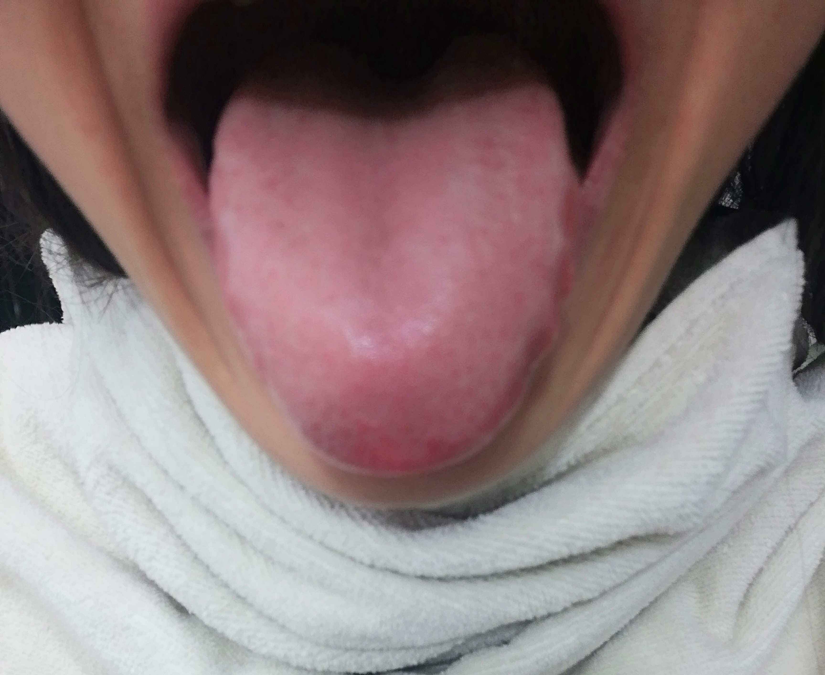 el dia de hoy veo rara mi lengua esto me ha echo desesperar aun mas,anexo una foto (tengo que confesarle que el segundo dia que me salia de la vagina  el flujo como leche cortada meti mi dodo en la vagina y salio untado de este flujo el cual prove con mi legua, puede ser asqueroso pero tenia tanti miedo que queia saber si el ph estaba alto y podria ser otra cosa (pero no estaba acido
